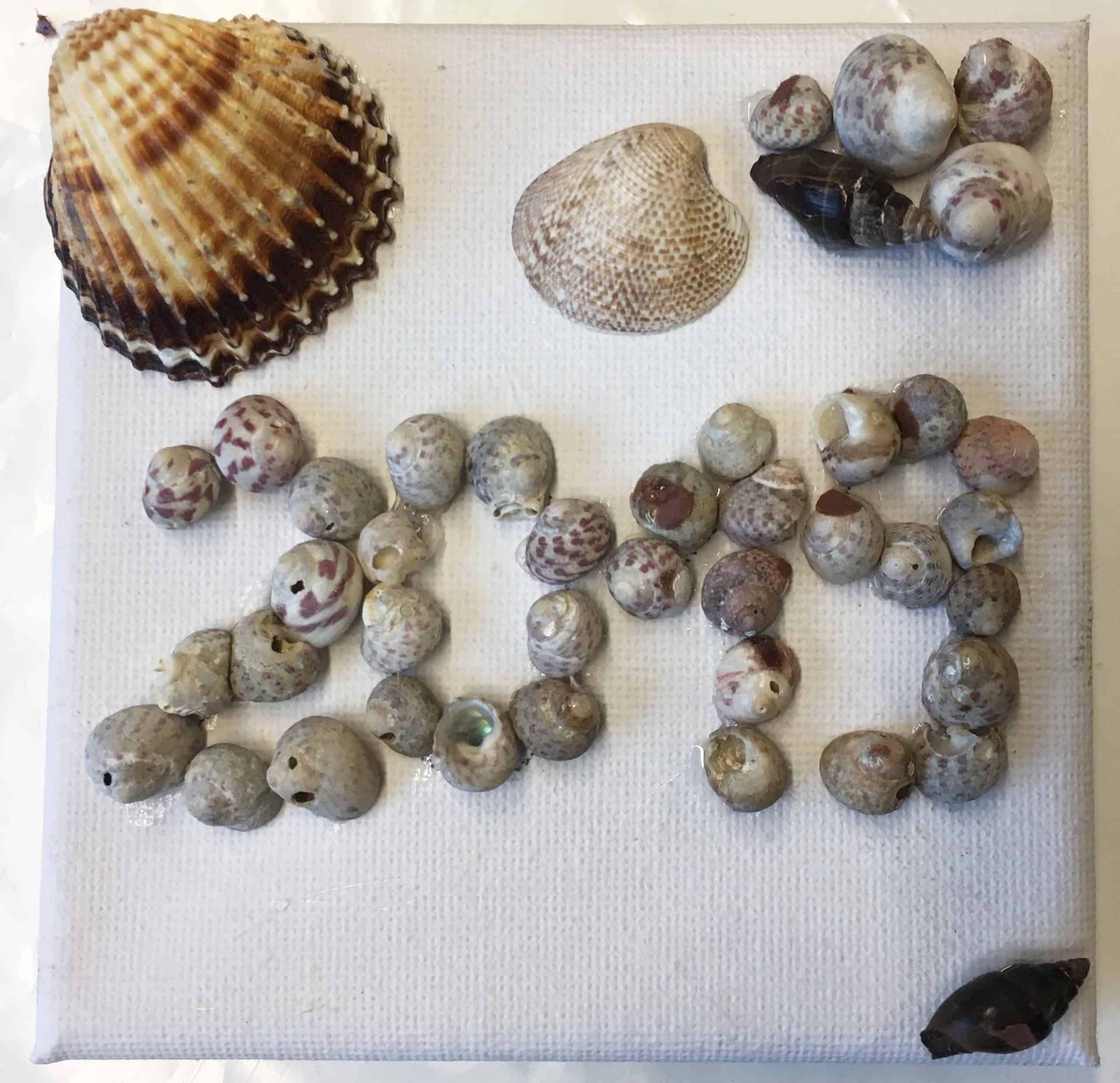 Der eigene Name mit Muscheln war ihr persönlicher Zugang zur Kunst. Sie widmete sich konzentriert mehrere Stunden der Auswahl der passenden Muscheln und der Platzierung. Heute hängt das Bild gerahmt zu Hause über ihrem Bett.